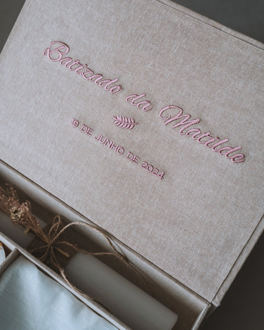 O nossos Kits de Batismo são criados com todo o carinho e atenção para tornar o batismo do seu bebé uma experiência inesquecível. Cada detalhe deste kit reflete o amor e a dedicação colocados na sua criação, garantindo que este momento especial seja envolvido em ternura e afeto.